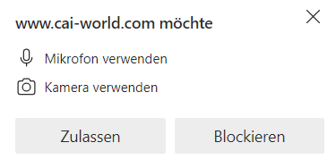 Click on the camera symbol and select the option Always allow website to access audio and video. In this dialog, you may also select another camera, if several cameras are available in your system.